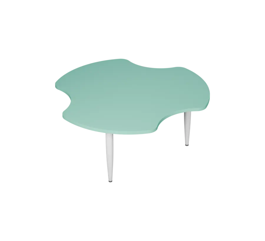 hravé/variabilní/modulární stoly, velké množství kombinací tvarů a barev kreativně rozehrají Váš prostor, kovové nohy, bílý lak