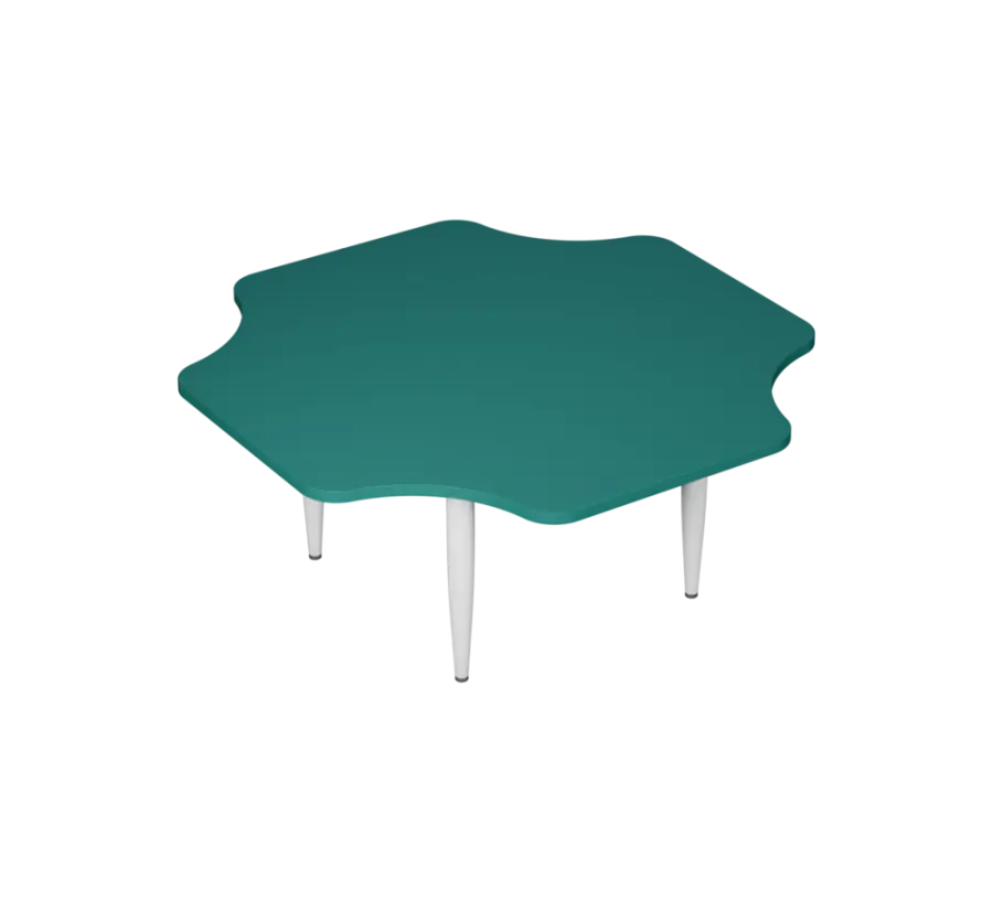 hravé/variabilní/modulární stoly, velké množství kombinací tvarů a barev kreativně rozehrají Váš prostor, kovové nohy, bílý lak