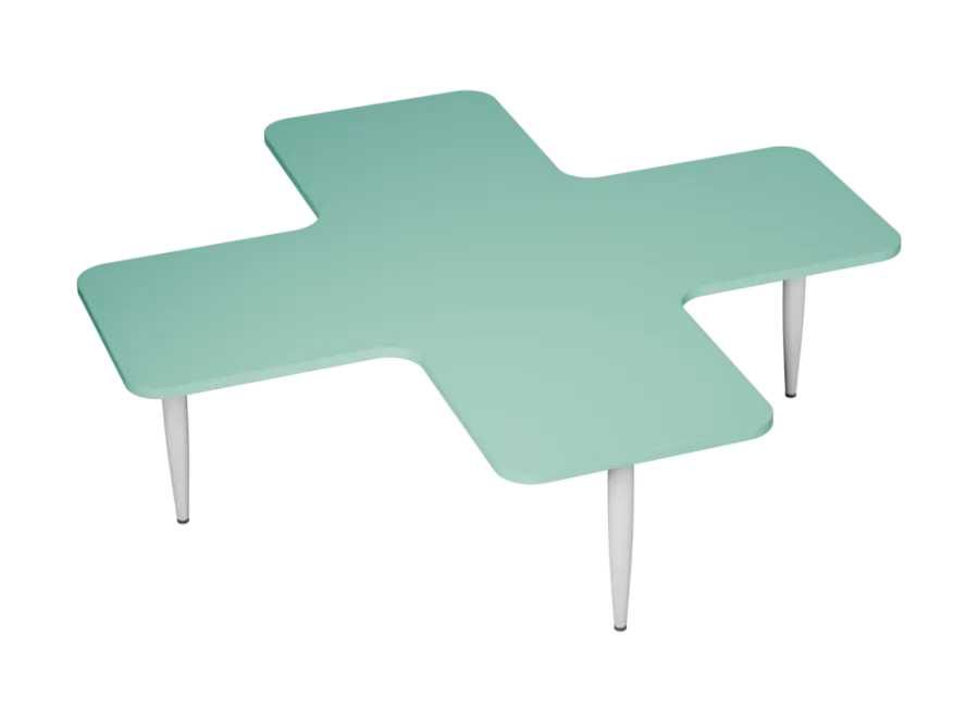 hravé/variabilní/modulární stoly, velké množství kombinací tvarů a barev kreativně rozehrají Váš prostor, kovové nohy, bílý lak