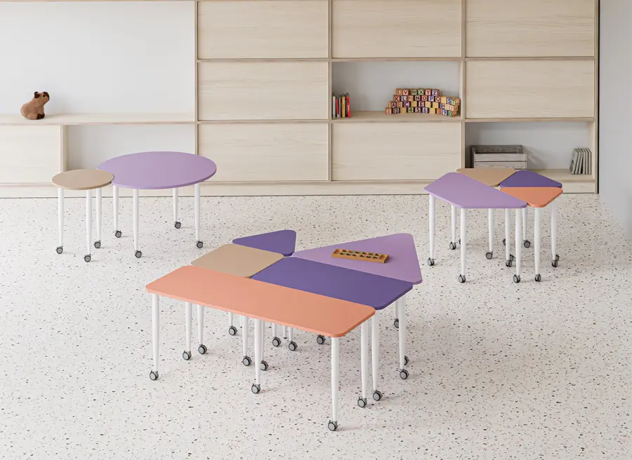 • hravé/variabilní/modulární stoly