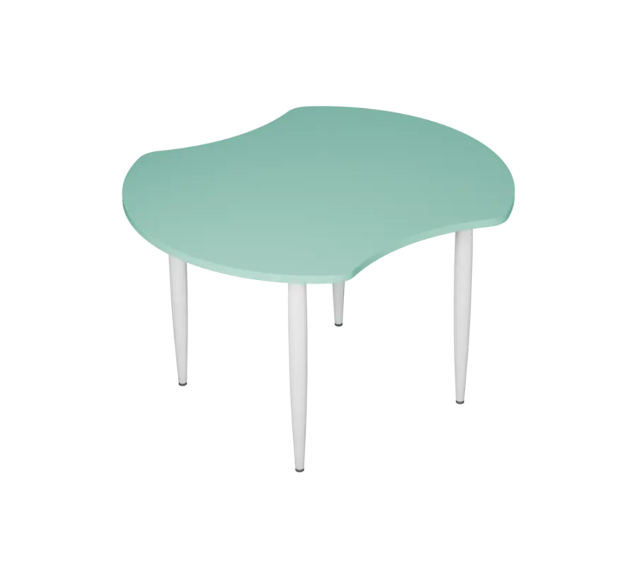 hravé/variabilní/modulární stoly, velké množství kombinací tvarů a barev kreativně rozehrají Váš prostor, kovové nohy, bílý lak
