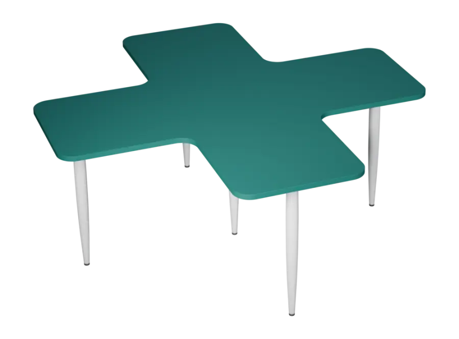 hravé/variabilní/modulární stoly, velké množství kombinací tvarů a barev kreativně rozehrají Váš prostor, kovové nohy, bílý lak