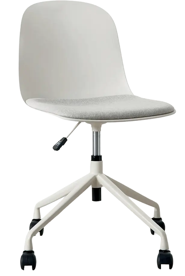židle na kolečkách minimalistického vzhledu a čistých linií, která se hodí jak k pracovním stolům, tak stolům jednacím nebo do učeben a školících místností, jedinečnost tvoří barevné sladění plastové skořepiny, kovových nohou a čalounění sedáku