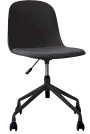 židle na kolečkách minimalistického vzhledu a čistých linií, která se hodí jak k pracovním stolům, tak stolům jednacím nebo do učeben a školících místností, jedinečnost tvoří barevné sladění plastové skořepiny, kovových nohou a čalounění sedáku