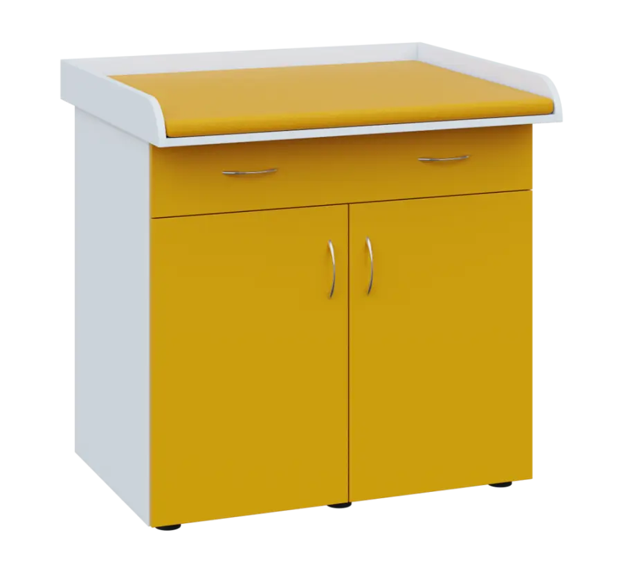 PP - 100 pult přebalovací s matrací, 2-dveřové, 1-zásuvka, 1000x1000x800, korpus bílý, dvířka žlutá odio, koženka žlutá Z 01