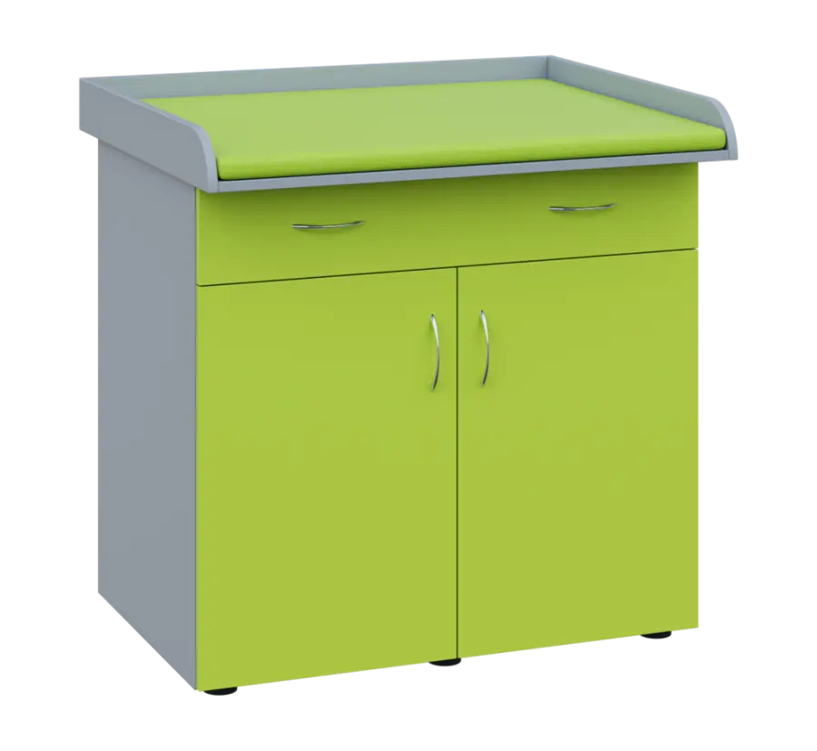 PP - 100 pult přebalovací s matrací, 2-dveřové, 1-zásuvka, 1000x1000x800, korpus šedý, dvířka jarní zeleň koženka zelinkavá Z 2