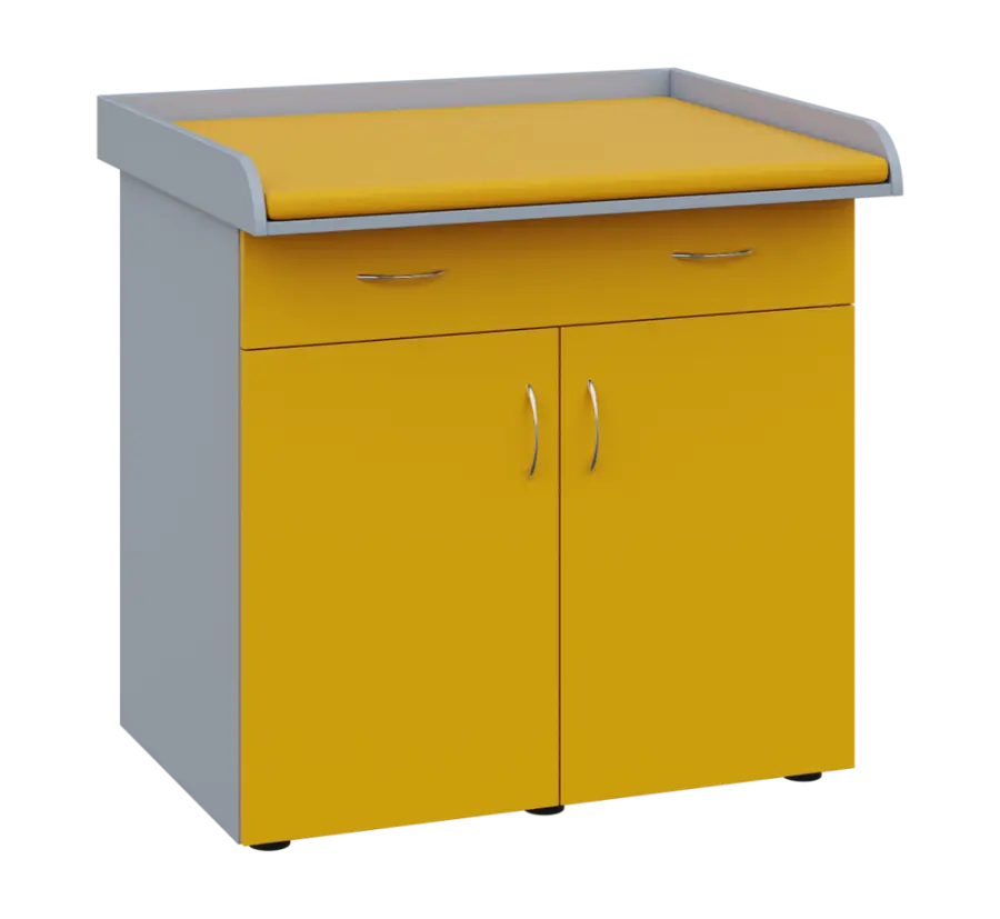 PP - 100 pult přebalovací s matrací, 2-dveřové, 1-zásuvka, 1000x1000x800, korpus šedý, dvířka žlutá odio, koženka žlutá Z 01