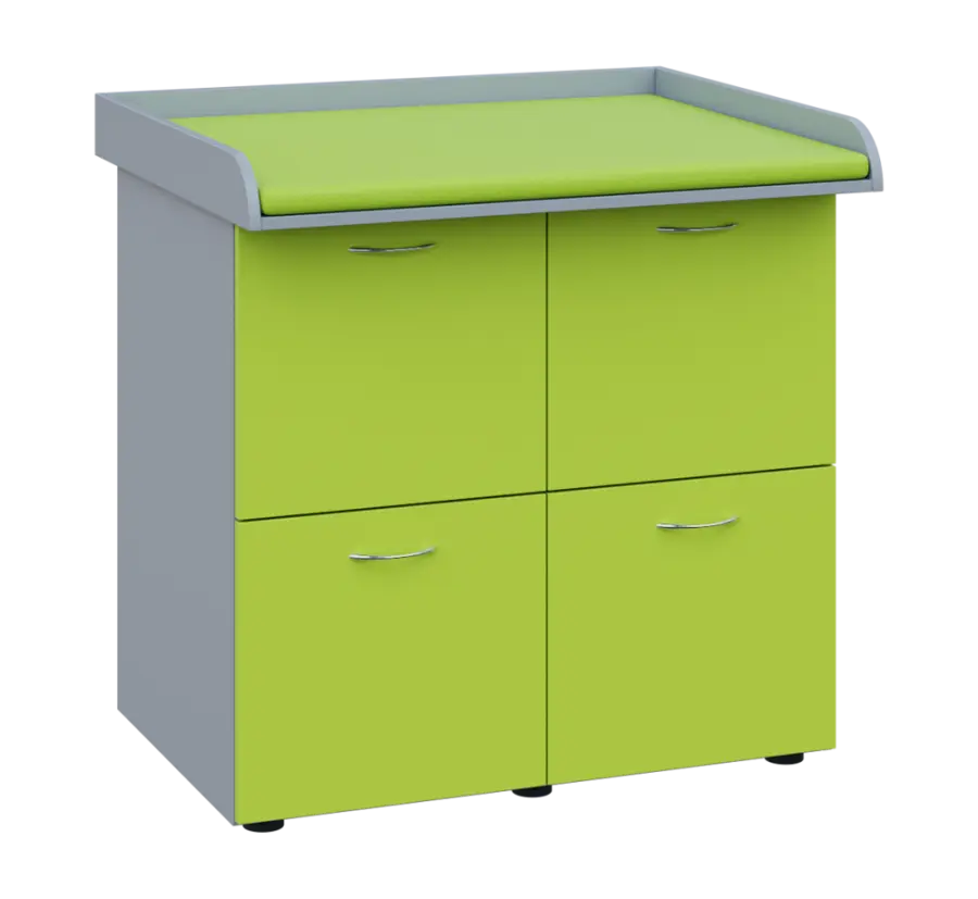 PP - 406 pult přebalovací s matrací, 4x kartotéka, 1000x840x800, korpus šedý, kartotéky jarní zeleň, koženka zelinkavá Z 2