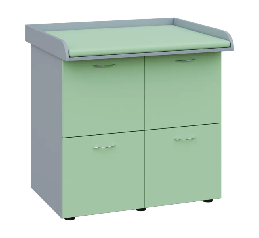 PP - 406 pult přebalovací s matrací, 4x kartotéka, 1000x840x800, korpus šedý, kartotéky šedo-zelinkavá, koženka zelinkavá Z 2