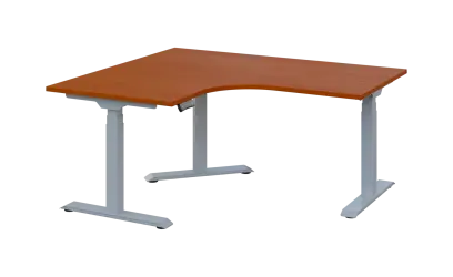 FLEXIERGO 90 160-140 výškově nastavitelný stůl, rohový, pravý, kovová podnož stříbrná, deska 25 mm, široký 1600 mm, třešeň šumavská