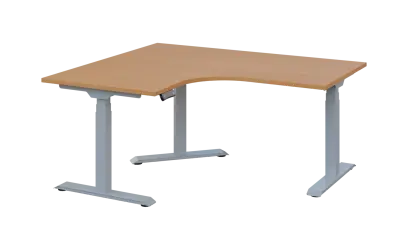 FLEXIERGO 90 160-140 výškově nastavitelný stůl, rohový, pravý, kovová podnož stříbrná, deska 25 mm, široký 1600 mm, buk royal