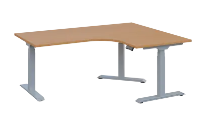 FLEXIERGO 90 180-140 výškově nastavitelný stůl, rohový, pravý, kovová podnož stříbrná, deska 25 mm, široký 1800 mm, buk royal