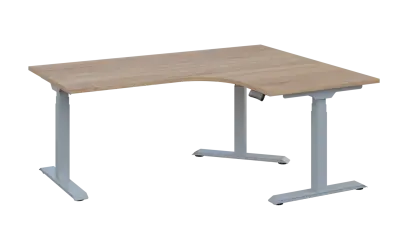 FLEXIERGO 90 180-140 výškově nastavitelný stůl, rohový, pravý, kovová podnož stříbrná, deska 25 mm, široký 1800 mm, dub bardolino