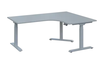 FLEXIERGO 90 180-140 výškově nastavitelný stůl, rohový, pravý, kovová podnož stříbrná, deska 25 mm, široký 1800 mm, šedá