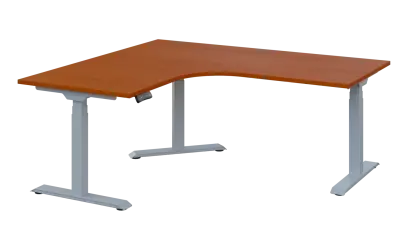 FLEXIERGO 90 180-140 výškově nastavitelný stůl, rohový, pravý, kovová podnož stříbrná, deska 25 mm, široký 1800 mm, třešeň šumavská