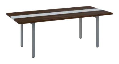 DOUBLE 200 pracovní stůl, kovová podnož stříbrná, deska 36 mm, široký 2000 mm, vložená deska ořech královský