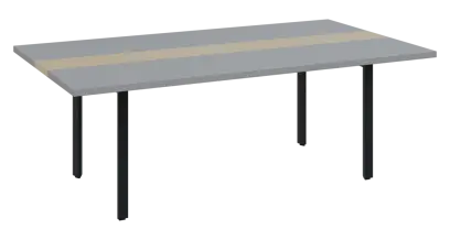 DOUBLE 221 pracovní stůl, kovová podnož černá, deska 36 mm, široký 2200 mm, šedá, vložená deska bříza světlá