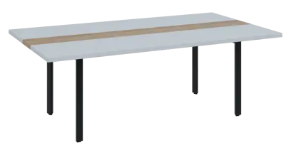 DOUBLE 221 pracovní stůl, kovová podnož černá, deska 36 mm, široký 2200 mm, bílá, vložená deska bříza světlá