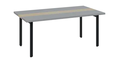 DOUBLE 180 pracovní stůl, kovová podnož černá, deska 36 mm, široký 1800 mm, šedá, vložená deska bříza světlá