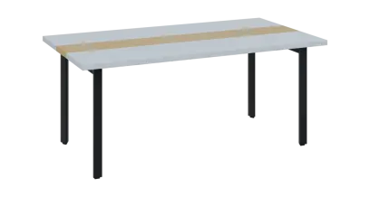 DOUBLE 180 pracovní stůl, kovová podnož černá, deska 36 mm, široký 1800 mm, bílá, vložená deska bříza světlá