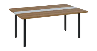 DOUBLE 181 pracovní stůl, kovová podnož černá, deska 36 mm, široký 1800 mm, ořech světlý, vložená deska bílá