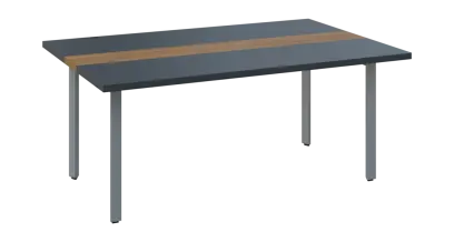 DOUBLE 181 pracovní stůl, kovová podnož stříbrná, deska 36 mm, široký 1800 mm, antracit, vložená deska ořech světlý