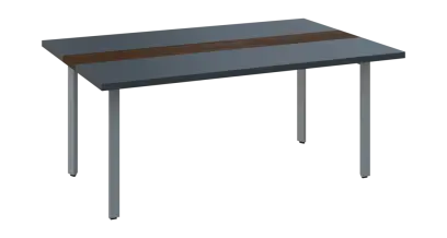 DOUBLE 181 pracovní stůl, kovová podnož stříbrná, deska 36 mm, široký 1800 mm, antracit, vložená deska ořech královský