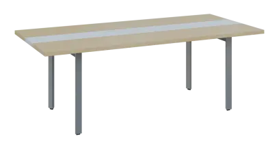 DOUBLE 220 pracovní stůl, kovová podnož stříbrná, deska 36 mm, široký 2200 mm, javor horský, vložená deska bílá