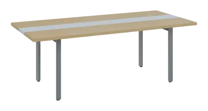 DOUBLE 220 pracovní stůl, kovová podnož stříbrná, deska 36 mm, široký 2200 mm, bříza světlá, vložená deska bílá