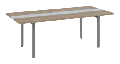 DOUBLE 220 pracovní stůl, kovová podnož stříbrná, deska 36 mm, široký 2200 mm, dub bardolino, vložená deska bílá