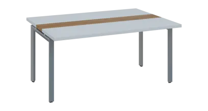DOUBLE 161 pracovní stůl, kovová podnož stříbrná, deska 36 mm, široký 1600 mm, bílá, vložená deska ořech světlý
