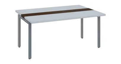 DOUBLE 161 pracovní stůl, kovová podnož stříbrná, deska 36 mm, široký 1600 mm, bílá, vložená deska ořech královský