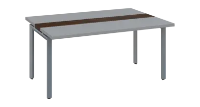 DOUBLE 161 pracovní stůl, kovová podnož stříbrná, deska 36 mm, široký 1600 mm, šedá, vložená deska ořech královský