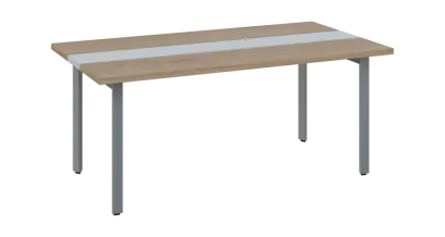DOUBLE 200 pracovní stůl, kovová podnož stříbrná, deska 36 mm, široký 2000 mm, ořech světlý, vložená deska bílá