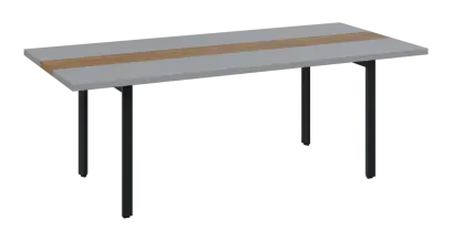 DOUBLE 220 pracovní stůl, kovová podnož černá, deska 36 mm, široký 2200 mm, šedá, vložená deska dub bardolino
