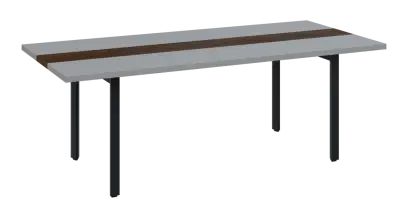 DOUBLE 220 pracovní stůl, kovová podnož černá, deska 36 mm, široký 2200 mm, šedá, vložená deska ořech královský