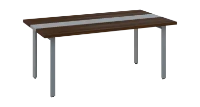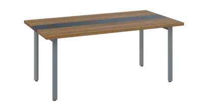 DOUBLE 200 pracovní stůl, kovová podnož stříbrná, deska 36 mm, široký 2000 mm, ořech královský, vložená deska šedá