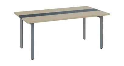 DOUBLE 200 pracovní stůl, kovová podnož stříbrná, deska 36 mm, široký 2000 mm, bříza světlá, vložená deska antracit