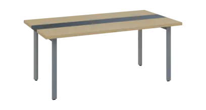 DOUBLE 200 pracovní stůl, kovová podnož stříbrná, deska 36 mm, široký 2000 mm, javor horský, vložená deska šedá