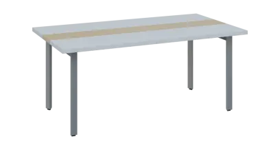 DOUBLE 200 pracovní stůl, kovová podnož stříbrná, deska 36 mm, široký 2000 mm, bříza světlá, vložená deska šedá
