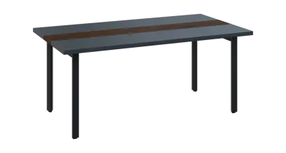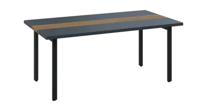 DOUBLE 200 pracovní stůl, kovová podnož černá, deska 36 mm, široký 2000 mm, antracit, vložená deska ořech světlý