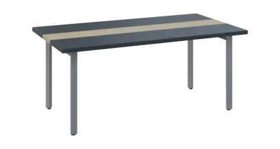 DOUBLE 180 pracovní stůl, kovová podnož stříbrná, deska 36 mm, široký 1800 mm, antracit, vložená deska bříza světlá