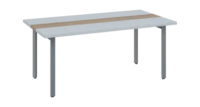 DOUBLE 180 pracovní stůl, kovová podnož stříbrná, deska 36 mm, široký 1800 mm, šedá, vložená deska bříza světlá