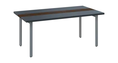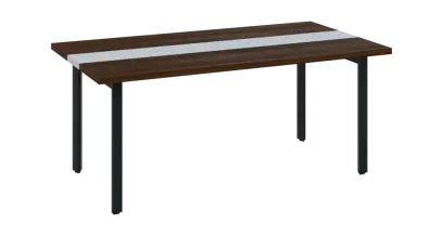 DOUBLE 180 pracovní stůl, kovová podnož stříbrná, deska 36 mm, široký 1800 mm, antracit, vložená deska ořech královský