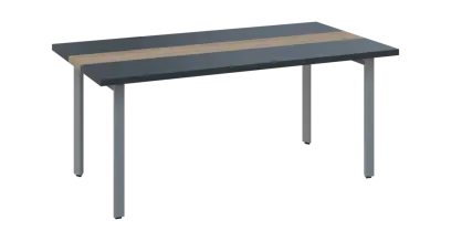 DOUBLE 180 pracovní stůl, kovová podnož stříbrná, deska 36 mm, široký 1800 mm, antracit, vložená deska ořech světlý