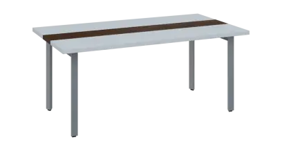 DOUBLE 180 pracovní stůl, kovová podnož stříbrná, deska 36 mm, široký 1800 mm, bílá, vložená deska ořech královský