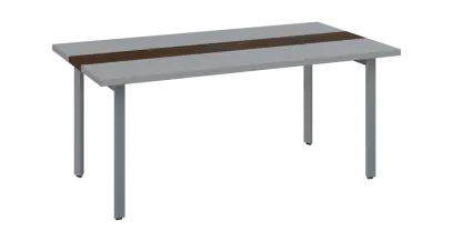 DOUBLE 180 pracovní stůl, kovová podnož stříbrná, deska 36 mm, široký 1800 mm, šedá, vložená deska ořech královský