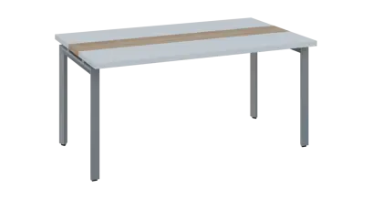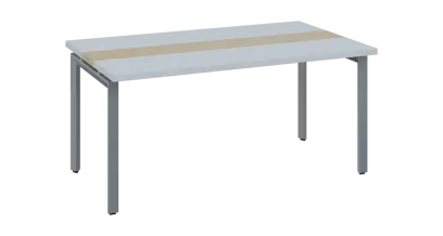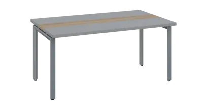 DOUBLE 160 pracovní stůl, kovová podnož stříbrná, deska 36 mm, široký 1600 mm, šedá, vložená deska bříza světlá