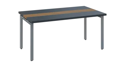 DOUBLE 160 pracovní stůl, kovová podnož stříbrná, deska 36 mm, široký 1600 mm, antracit, vložená deska ořech světlý