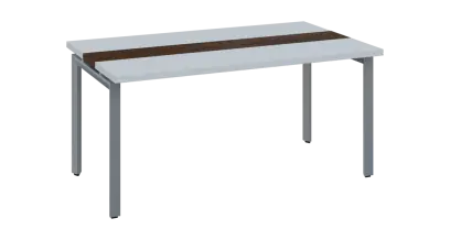 DOUBLE 160 pracovní stůl, kovová podnož stříbrná, deska 36 mm, široký 1600 mm, bílá, vložená deska ořech královský